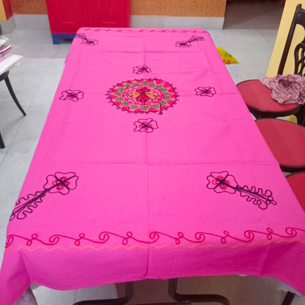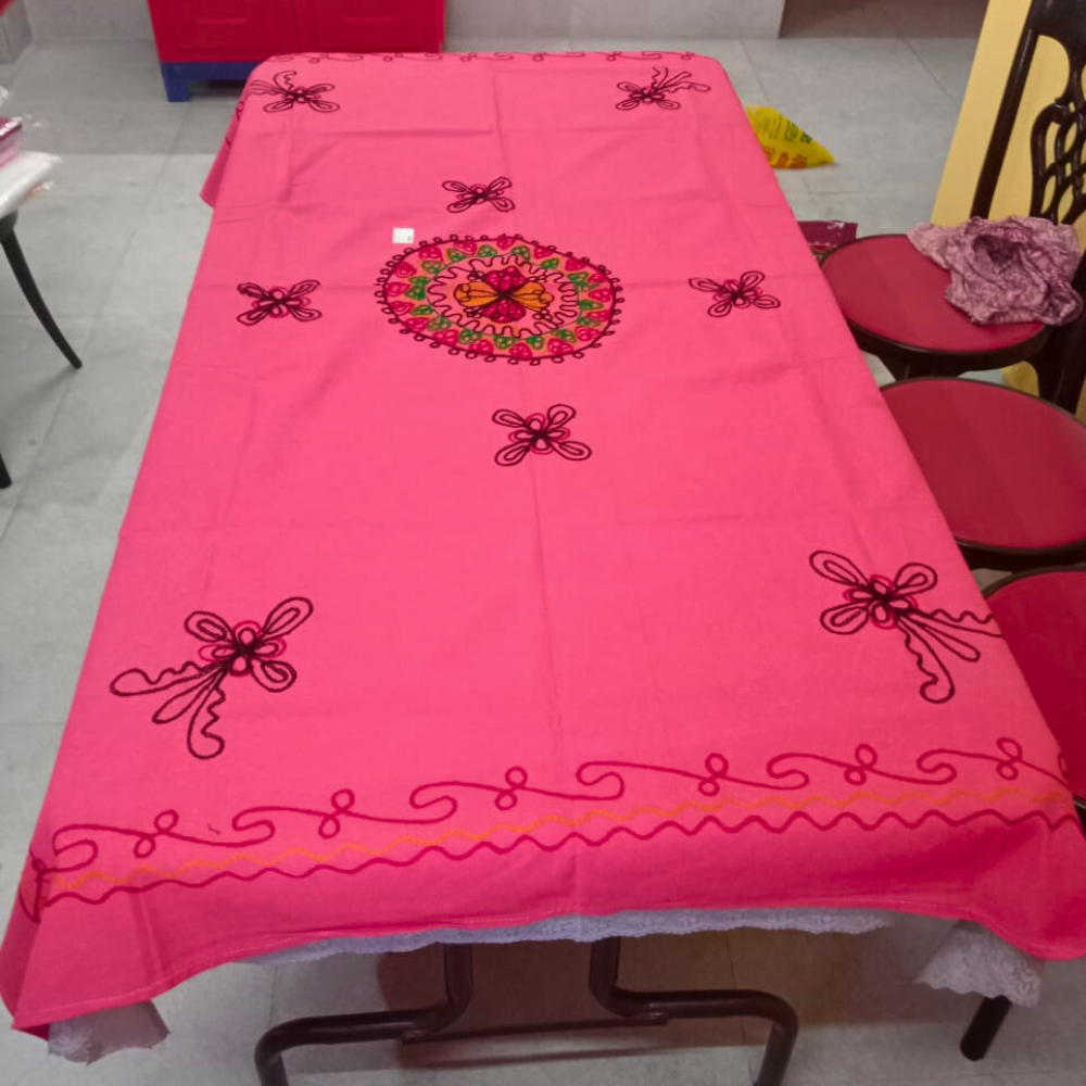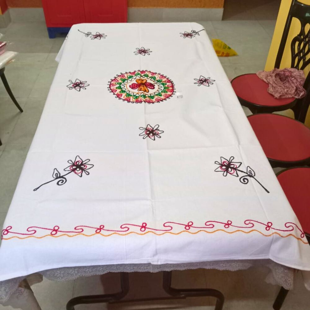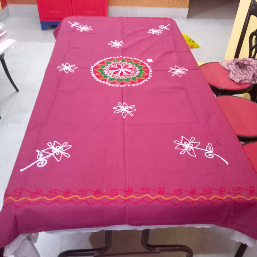 Made from premium quality cotton fabric with elegant floral embroidery, this table cover keeps